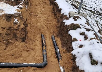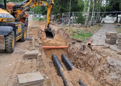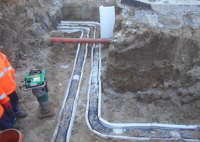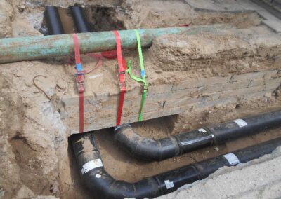 Moment podłączenie nowej rury przewodowej z PE i wprowadzanie jej w miejsce rur azbestowo-cementowych.
