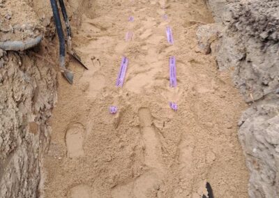 Wprowadzenie do istniejącego rurociągu żerdzi stalowych w celu przeciągnięcia rury PE w miejsce istniejącej sieci wodociągowej.