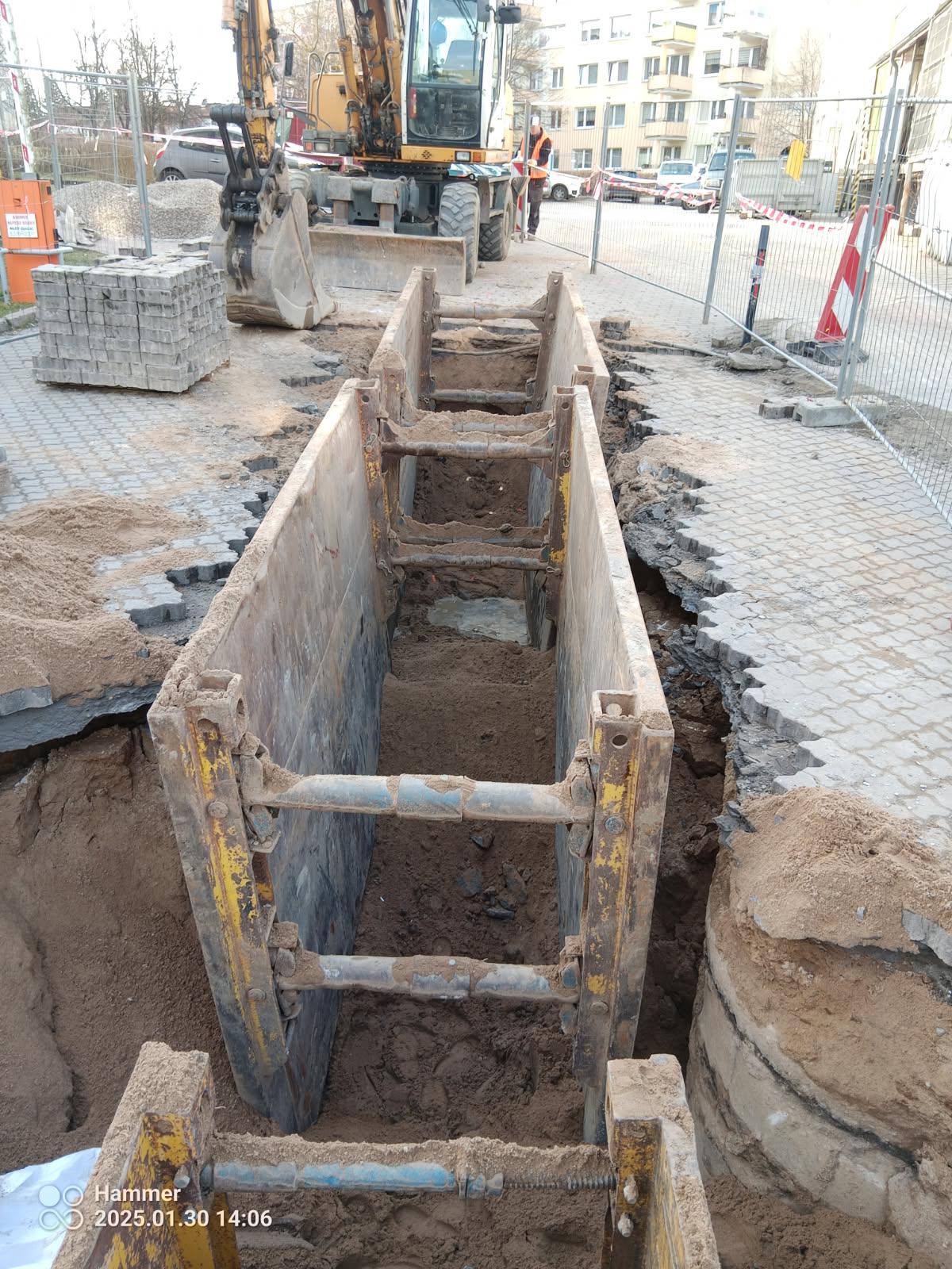 Zdjęcia z remontu kanalizacji sanitarnej w ul. Żołnierskiej w Olsztynie, Rejon budynków 21-35.