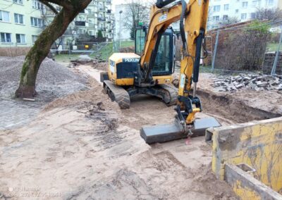 Wykonanie komór montażowych na osiedlu Likusy w Olsztynie, wymiana metoda Crackingu statycznego istniejącej rury azbesto-cemetowej przez wprowadzenie nowej rury z PE